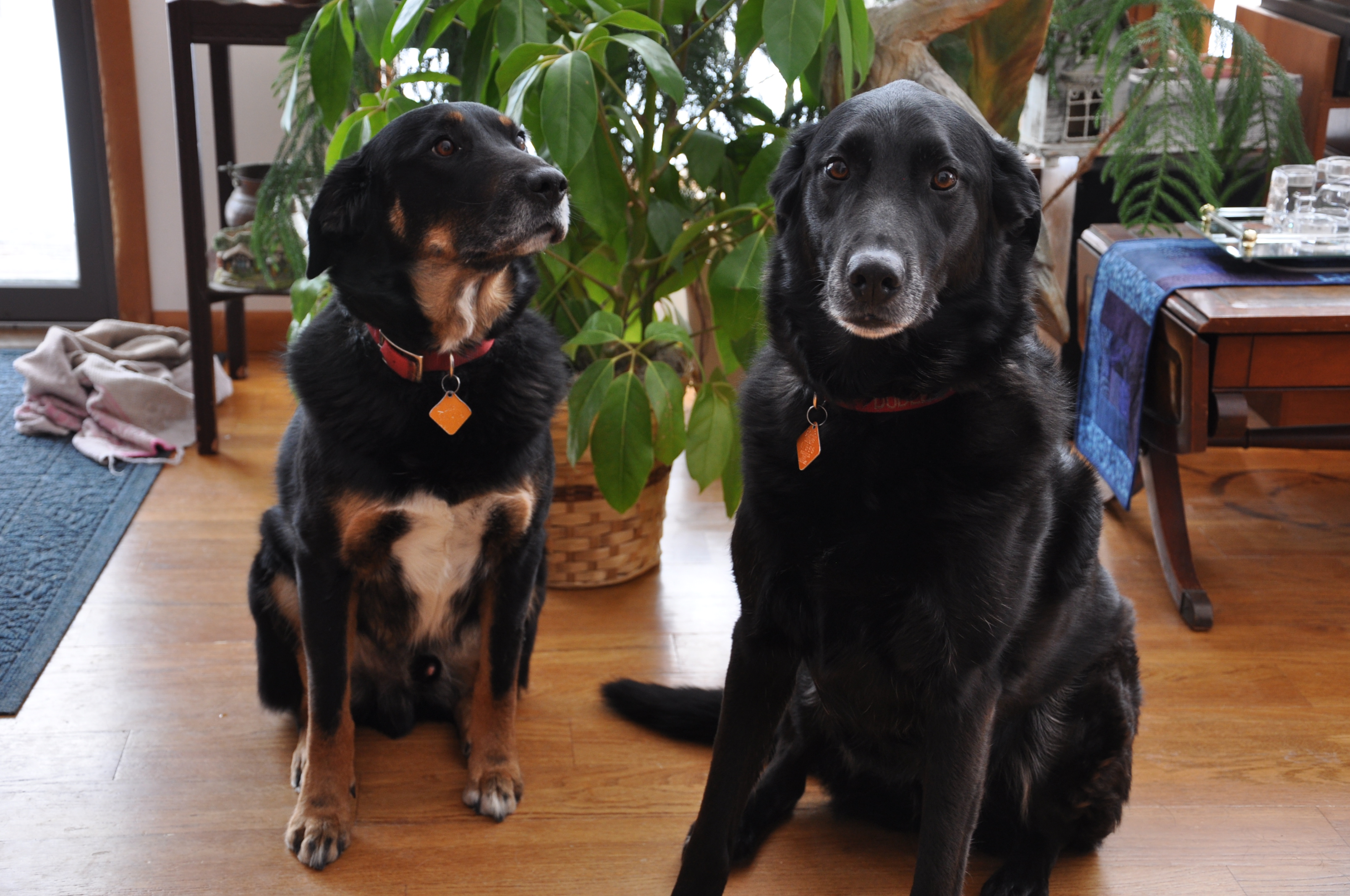 Gunner always looked to Dudley for guidance in new situations. For instance when the two went to the dog sitter's together for the first time, Dudley was so exuberant about arriving, Gunner knew it was OK and felt comfortable joining in the canine fun.